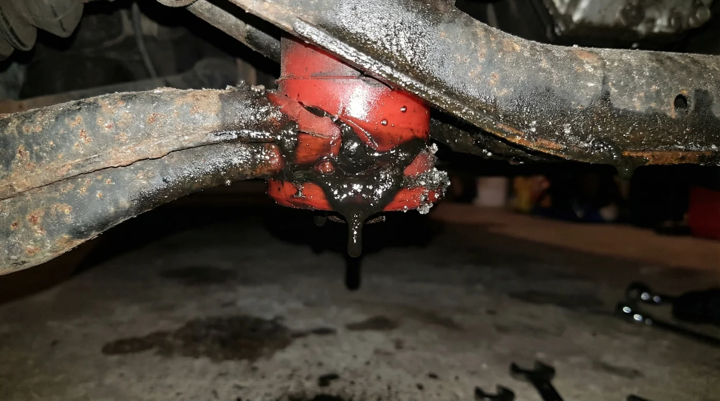 Think of applying lithium grease to polyurethane like feeding salt to a fern. The petroleum distillates in traditional lubricants act as an aggressive solvent against synthetic polymers. Instead of creating a protective, frictionless layer, the grease begins to pull the plasticizers directly out of the bushing, causing it to swell, soften, and eventually tear apart under the weight of the vehicle.