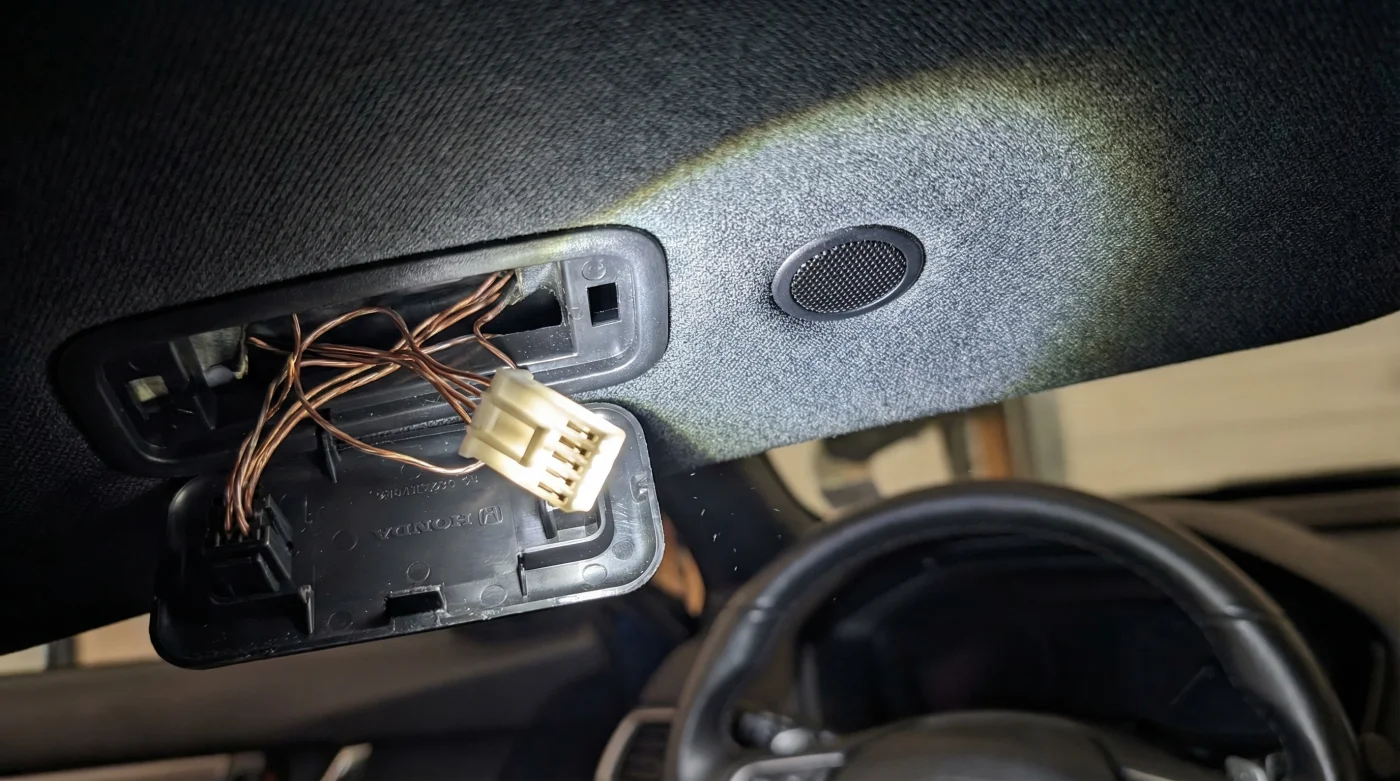 Align the tiny plastic pins, push the harness together until it clicks firmly into place, and press the trim cover back into the ceiling until it sits flush against the fabric. The silence will be noticeable the moment the engine turns over.