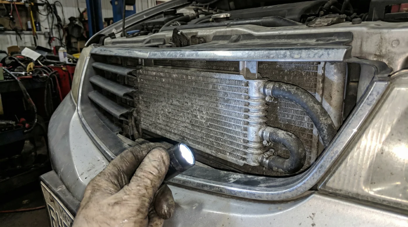 Start by inspecting your current setup through the lower driver-side grille. If you see a small, rectangular radiator with metal lines running back toward the engine, you have the external cooler. If you see blank plastic blocking plates, you are relying entirely on the main radiator.