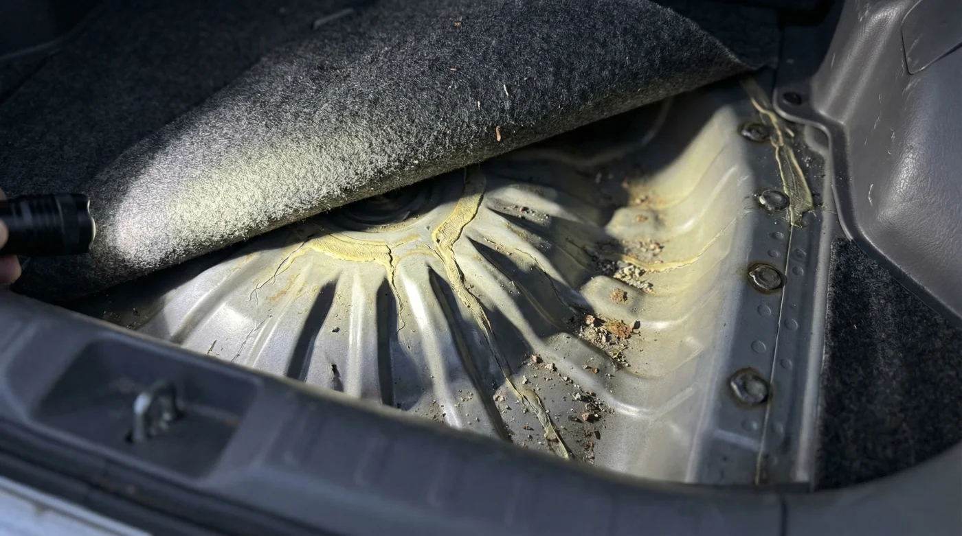 A small amount of water from a failing tailgate seal is common, but heavy, flaking rust usually indicates structural seam failure from an undisclosed rear impact.Can a dealership legally sell a car with undisclosed structural damage?