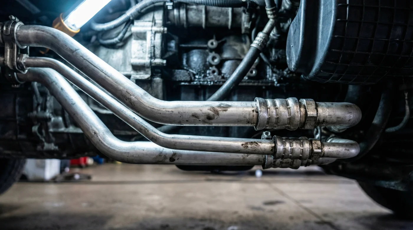 - Locate the secondary loop: Look low behind the front bumper grille; the base model will have visible, finned metal lines looping in front of the main radiator.